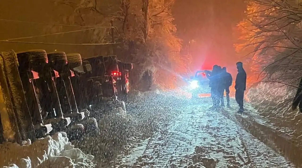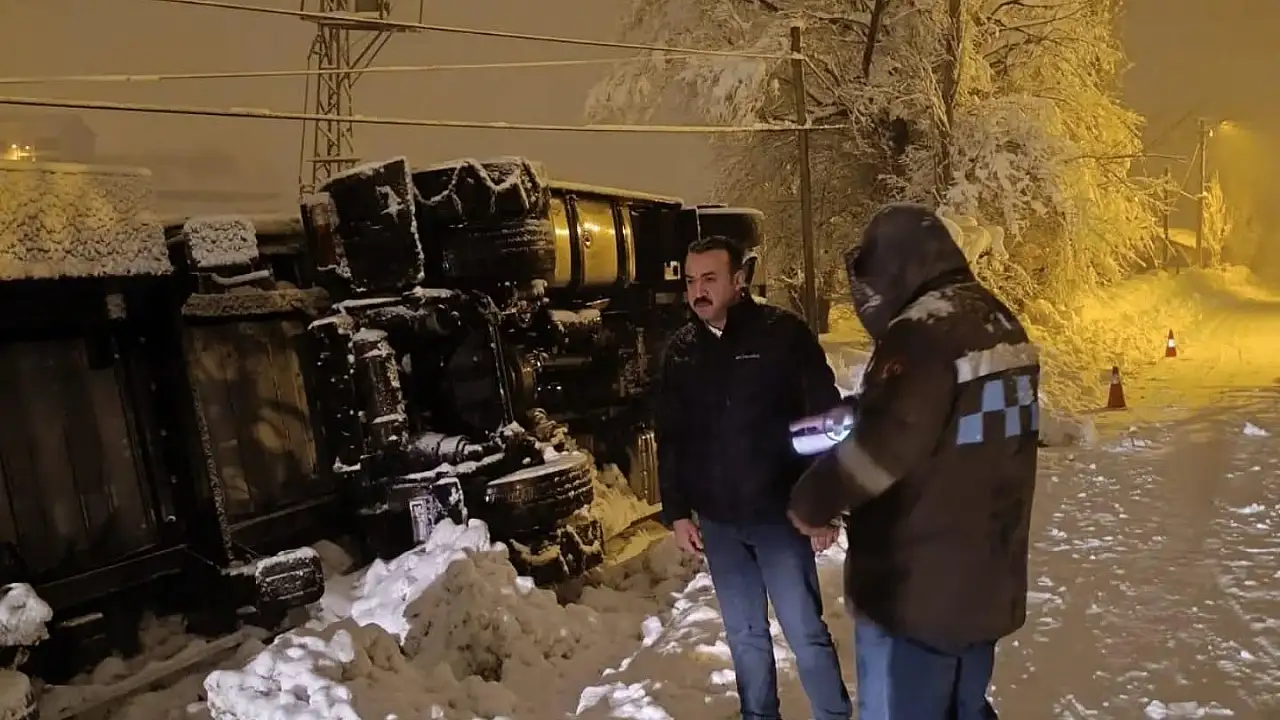 Çelikhan İlçesinde doğalgaz taşımacılığı yapan sıkıştırılmış doğalgaz tırı devrildi.