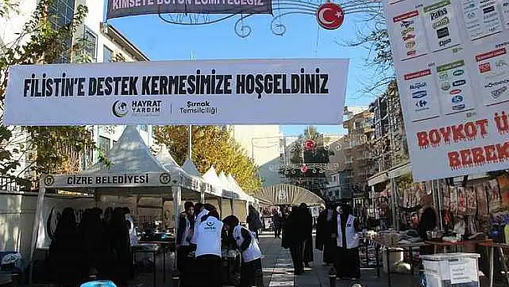 Şırnak sivil toplum kuruluşlarından (STK) oluşan Şehri Nuh Platformu Cizre'de Gazze yararına yardım çadırı kurdu. 3 gün sürecek olan yardım kampanyasından elde edilecek gelirin Filistin'e gönderileceği belirtildi.Şırnak'ta 24 STK tarafından kurulan Şehri Nuh Platformu, 'Cizre'den Filistin'e Gönül Bağı' yardım çadırı kurarak, elde edilecek geliri Gazze'ye gönderecek. Cizre Sanat Sokağı'nda kurulan stantlarda 3 gün boyunca düzenlenecek olan yardım kampanyasına Cizreliler yöresel yemek, elbise ayakkabı ve el emeği işlerini getirerek bağışta bulundu.Kur'an-ı Kerim tilavetiyle açılışı yapılan yardım çadırında platform adına konuşma yapan Yahya Yıldız, emeği geçenlere teşekkür etti. Yardım çadırına getirilen Filistin bayraklı pasta açık artırmayla 3 bin 200 TL'ye satıldı. İHA