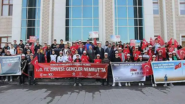 Cumhuriyetin 100. kuruluş yıl dönümü etkinlikleri çerçevesinde 100 genç Nemrut Dağı zirvesine çıktı.