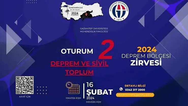 Gaziantep Üniversitesi (GAÜN) Mühendislik Fakültesi tarafından düzenlenecek olan Deprem Bölgesi Zirvesi'nde 'Deprem ve Sivil Toplum' konusu ele alınacak.