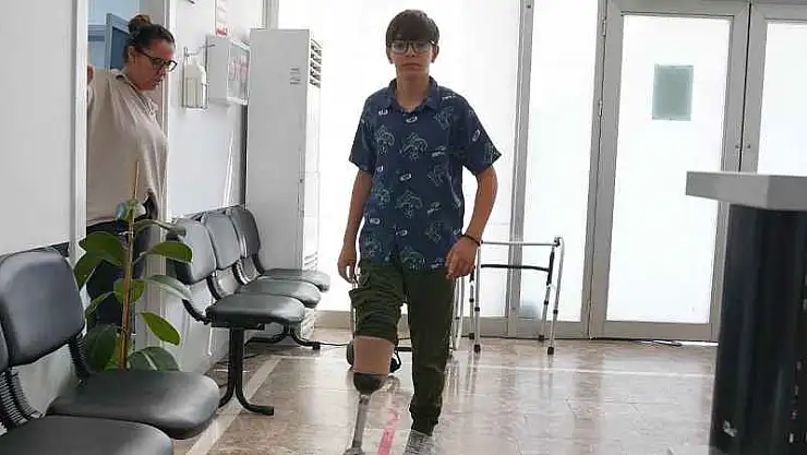 Asrın felaketi 6 Şubat Kahramanmaraş depremlerinde ailesini, kardeşlerini ve bacağını kaybeden 12 yaşındaki Abdulkadir Gökkaya, takılan protezle tekrar yürümeye başladı.