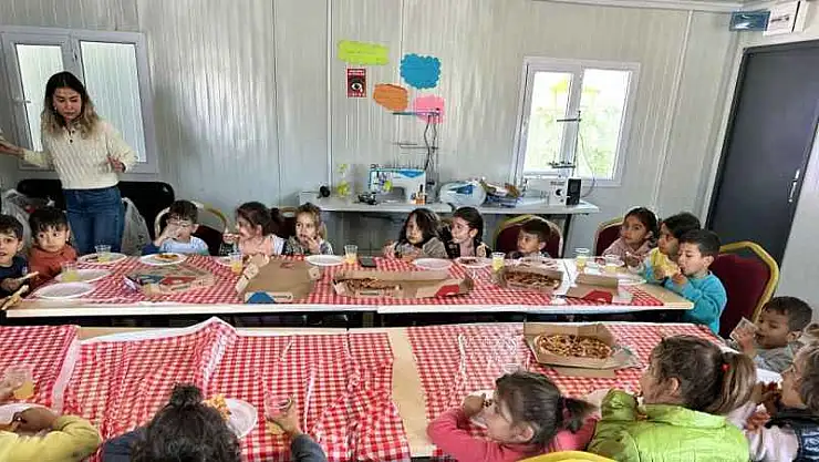 Adıyaman'da 6 Şubat tarihinde meydana gelen depremden etkilenen ailelerin yaşadığı K15 konteyner kentindeki çocuklar, eğitim gördükleri Mor Yerleşke'de Adıyaman Nemrut Rotary Kulübünün de desteği ile ilk kez pizza ile tanıştı ve harika bir öğle yemeğinin ardından pasta kesip eğlendiler.