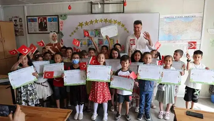 Kahramanmaraş 2023-2024 eğitim öğretim yılını konteyner kentlerde tamamlayan çocuklar karne heyecanı yaşadı.