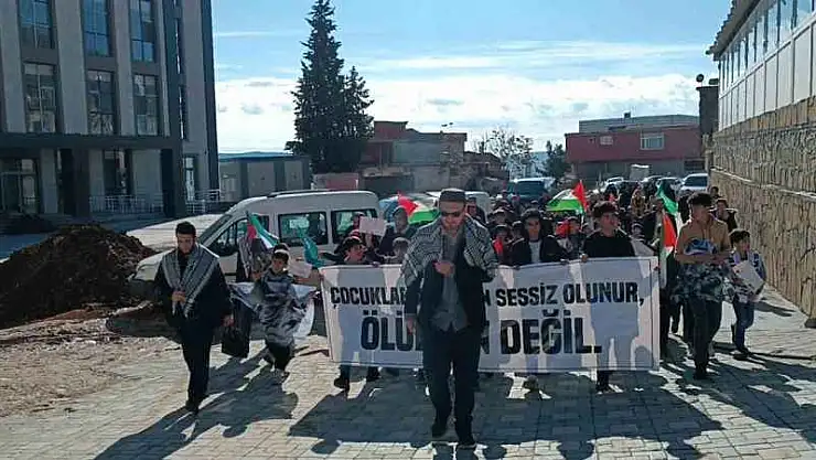 Diyarbakır'ın Dicle ilçesinde çocuklar tarafından İsrail'in saldırılarına maruz kalan Gazze'ye destek için yürüyüş yapıldı.