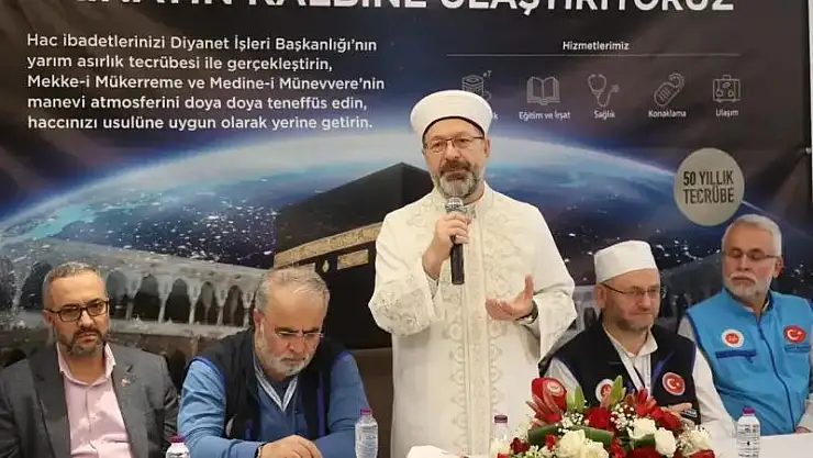 Kur’an-ı Kerim’i bilmeyenlerin bir an önce öğrenmesi gerektiğini söyleyen Başkan Erbaş, “Rabbimiz bu mübarek mekanlarda indirdiği kitapla bize ne diyor, hangi mesajı veriyor, bunu anlamamız lazım. Nihai hedefimiz hayatımızı Kur’an’a göre düzenlemek. Esasında bütün ibadetlerimizin amacı bizim daha iyi Müslüman, insan olmamızı sağlamaktır” ifadelerini kullandı.
