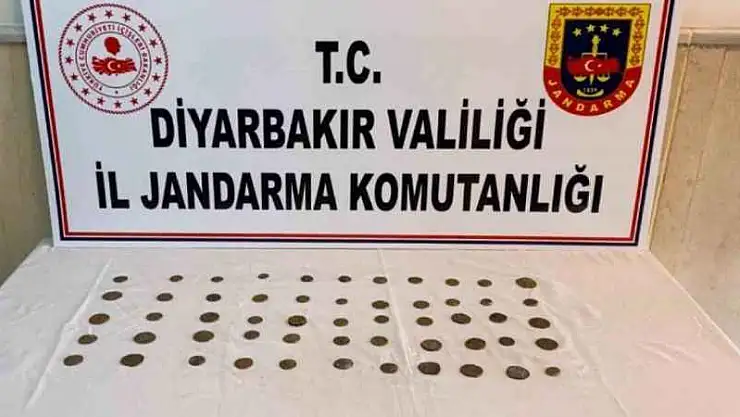 Diyarbakır'ın Bağlar ilçesinde Bizans, Asur ve Roma dönemlerine ait 57 adet muhtelif sikke ve tarihi eser satmaya çalışan 2 şüpheli yakalandı.