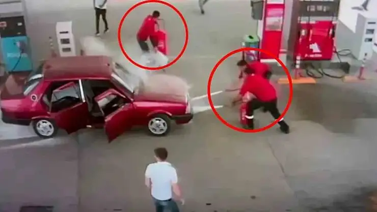 Facianın eşiğinden dönülen o anlar ise, akaryakıt istasyonunun güvenlik kamerasına yansıdı.
