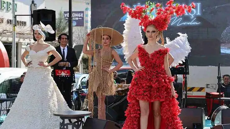 “Şu an model arkadaşımız üzerinde gördüğünüz Diyarbakır’ın Kulp ilçesinde yetişen ipek kozasından bir tasarımımız var” diyen Kaymak, “Onun hemen yanında çuvaldan, iplikten yaptığım bir tasarım var. Diğer arkadaşlarımızın üzerinde palmiye yaprağı var. Begonvil çiçeğinden tasarım var. Yine çiçekten esinlenerek yaptığım gül modeli tasarım var. Akasya yaprağından yaptığım tasarım var. Bir birinden ilginç tasarımlara imza attık. Çok mutluyuz, sevinçliyiz" ifadelerinde bulundu.
