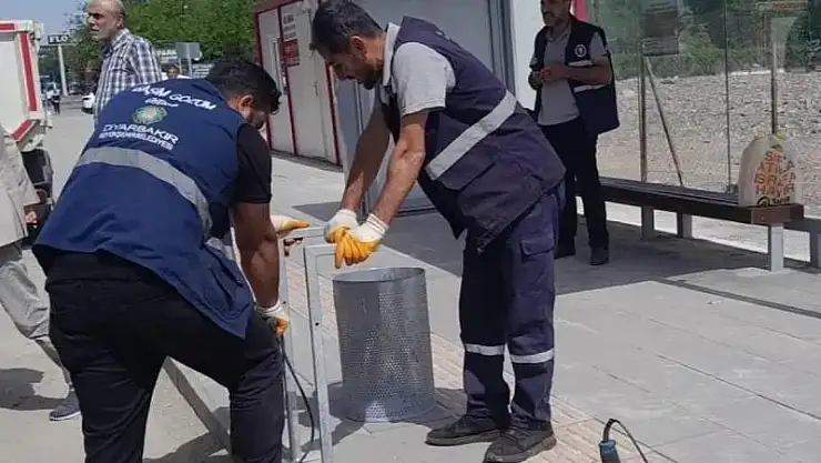 Diyarbakır Büyükşehir Belediyesi, kent merkezindeki ana arterlerde kırılan ve eksik olan yerlere çöp kovaları yerleştirmeye başladı.