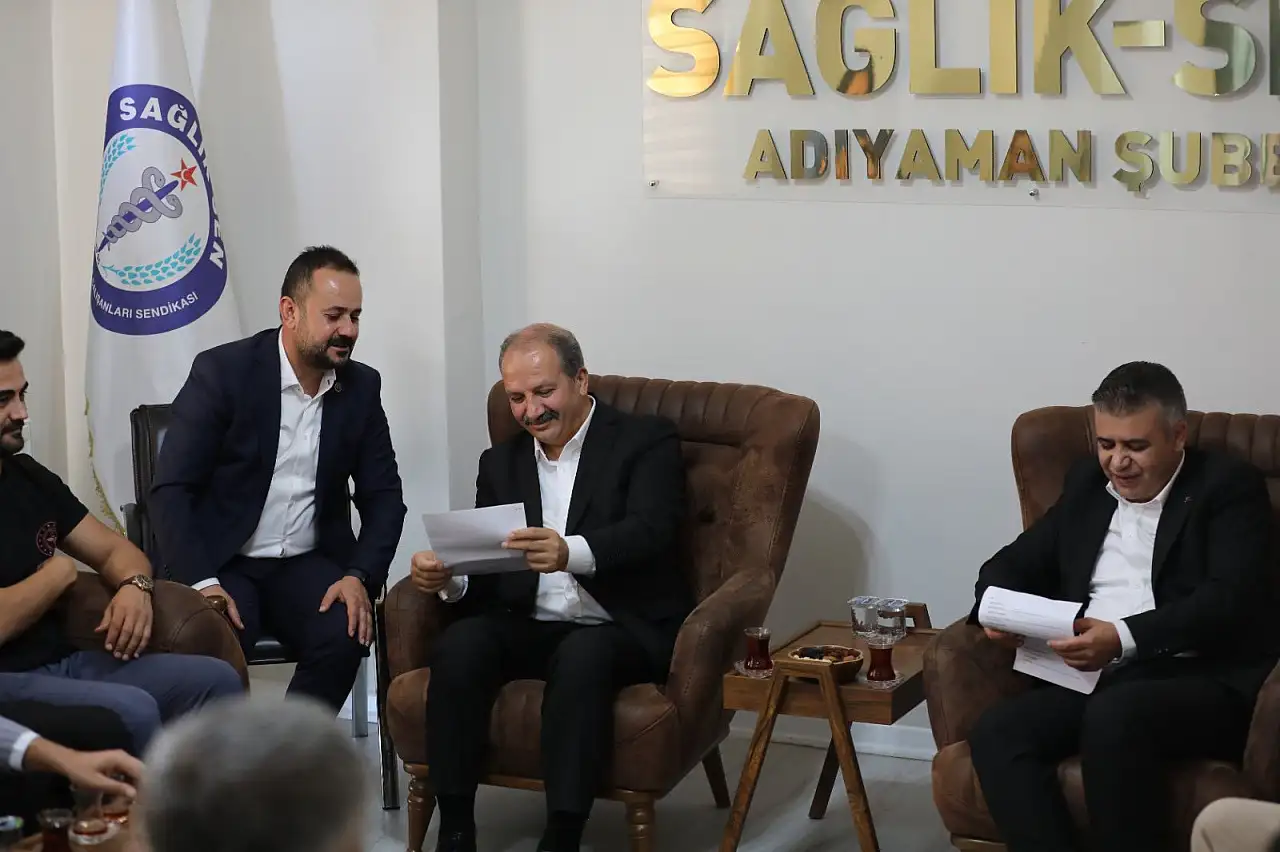 Sağlık-Sen Genel Başkanı Mahmut Faruk Doğan ve Genel Başkan Yardımcısı Yasin Barutçu Sağlık-Sen Adıyaman şubesini ziyaret etti.