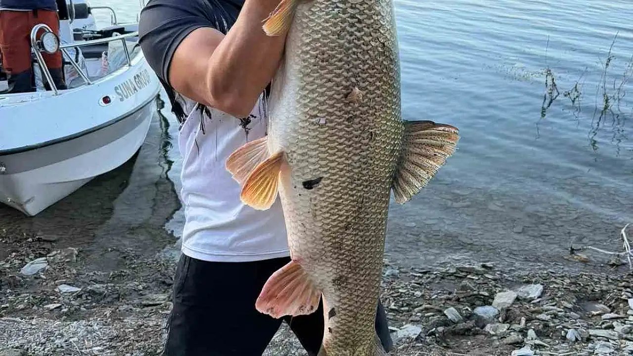 Elazığ'da balıkçı 70 kiloluk turna yakaladı
