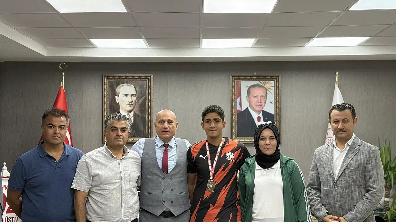 Muğla’da büyük başarıya imza atan sporcu M. Emir Kaya ailesiyle birlikte Adıyaman Gençlik ve Spor İl Müdürü Hüseyin Elüstü’nü makamında ziyaret etti.