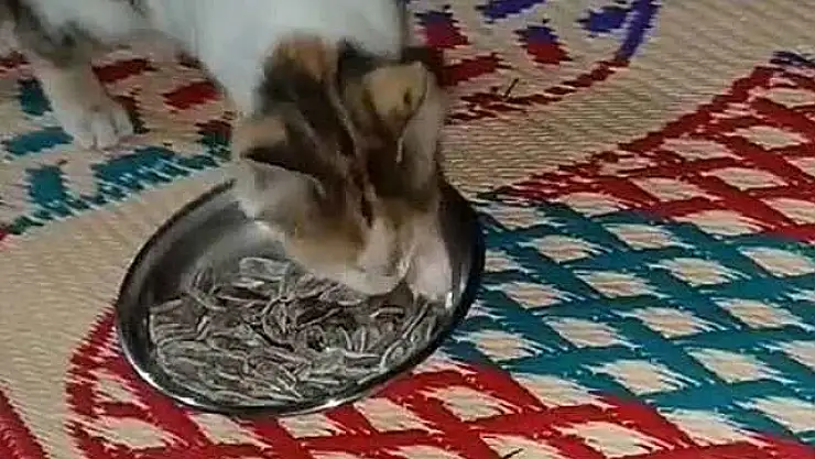 Elazığ'da tabağın içerisindeki çekirdekleri yiyen kedinin görüntüleri şaşkınlık oluşturdu.