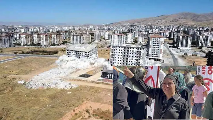 Malatya'da ağır hasarlı yüksek binaların patlayıcı madde kullanılarak yıkılmasına devam ediliyor. Yıkım esnasında site sakinleri yuvalarının yıkımını yine gözyaşları içinde izledi.