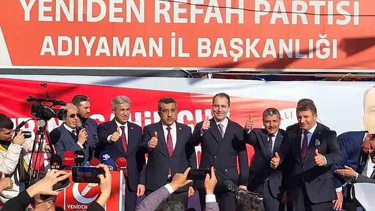 Yeniden Refah Partisi Genel Başkanı Fatih Erbakan, Adıyaman’da seçim koordinasyon merkezinde partililere hitap etti.