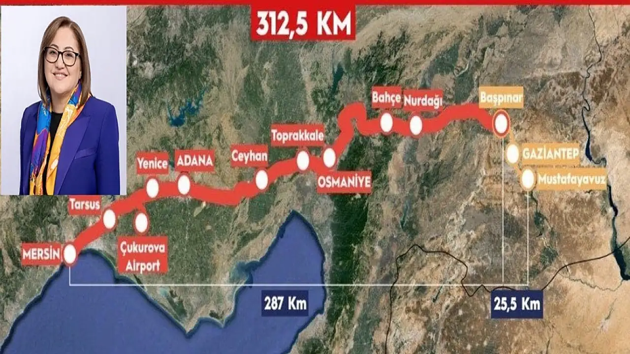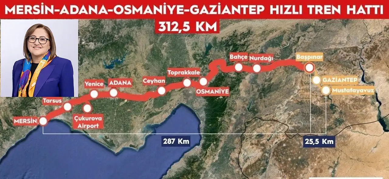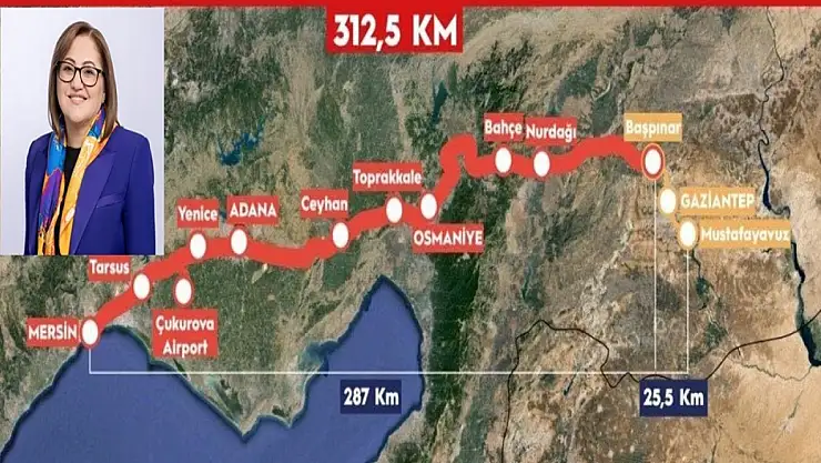 Başlatılan proje sayesinde Gaziantep, Mersin arası 6 saat 23 dakikadan 2 saat 15 dakikaya düşeceğini belirten Şahin; “Yeni haftaya büyük bir müjdeyle başlıyoruz. Mersin, Adana, Osmaniye ve Gaziantep Hızlı Tren Projesi ile bölgemiz, Türkiye’nin yeni Marmara’sı olma yolunda hızla ilerliyor. Saatte 200 km hıza uygun bu dev proje başladı ve 2028 yılında, yani 2 yıl sonra, halkımızın hizmetinde olacak.
