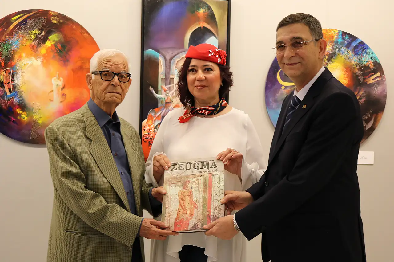 Konuşmaların ardından GSO Yönetim Kurulu Başkanı Adnan Ünverdi, ve Gaziantep Lisesi Emekli Tarih Öğretmeni Sabri Turan, SANKO Holding adına “Zeugma Fırat’ın Gerdanlığı” isimli yayını Fatoş Eker Tatar’a takdim etti.