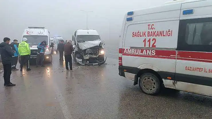 Yoğun sisin etkili olduğu Gaziantep'te yolcu minibüsünün kontrolsüz dönüş yapan vince çarpması sonucu meydana gelen kazada 9 kişi yaralandı.
