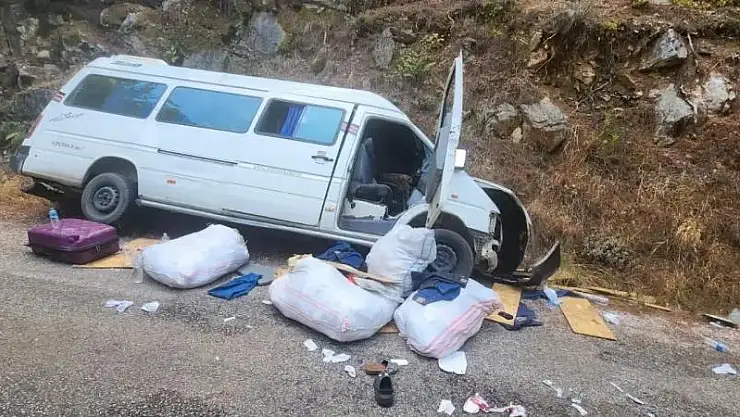 Freni boşalan minibüs kayaya çarpıp devrildi: 3'ü çocuk 6 yaralı