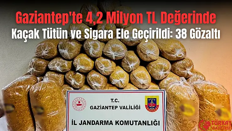 - Gaziantep'te 4,2 milyon TL değerinde kaçak tütün ve sigara ele geçirildi: 38 gözaltı