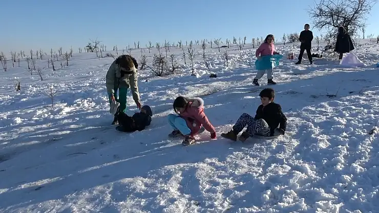 Tepsi, poşet ve leğenlerle kayarak çok eğlendiklerini belirten çocuklar, hep beraber eğlenmenin ve birlikte kaymanın çok keyifli olduğunu dile getirdiler.