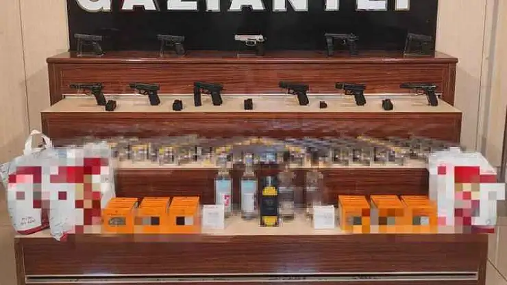 Gaziantep'te 2 araç ve 2 adrese yönelik kaçakçılık operasyonunda 11 adet tabanca ile kaçak sigara, çay, alkol ve kulaklık ele geçirildi. Operasyon sonucunda yakalanan 2 şüpheli şahıs tutuklandı.