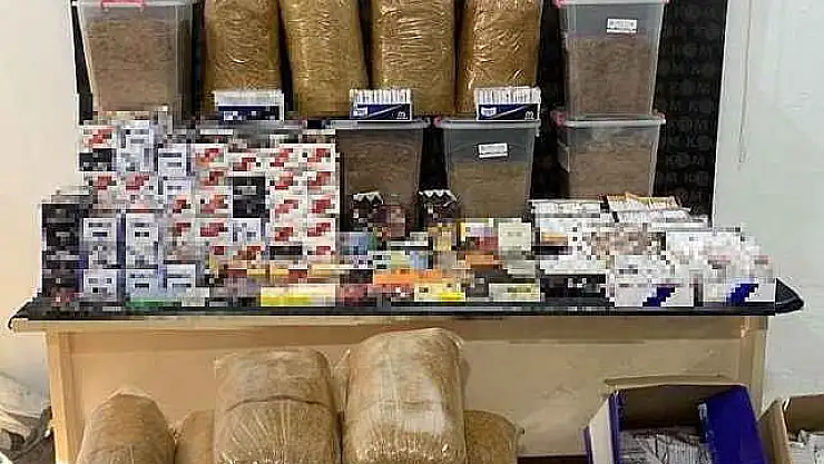 Gaziantep'te 3 ikamet ve 4 iş yerinde yapılan aramalarda, 85 bin adet sigara kağıdı, 80 bin 460 adet makaron, 412 kilogram kıyılmış tütün, 135 adet puro, 90 paket sigara, 59 adet elektronik sigara ve likiti, 53,8 kilogram nargile tütünü ele geçirildi.