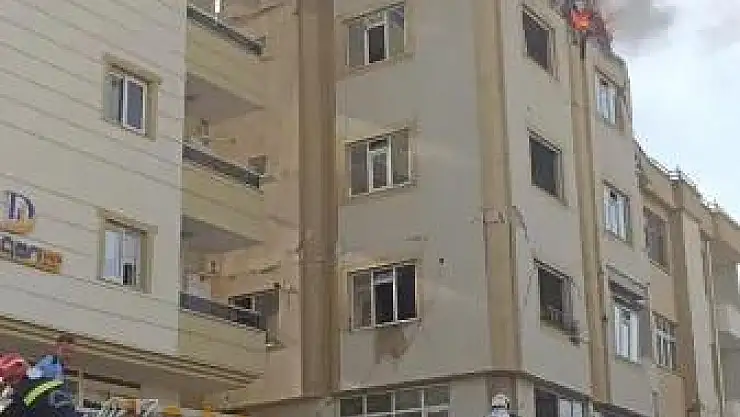 Gaziantep'in İslahiye ilçesinde, 6 Şubat'ta meydana gelen depremde ağır hasar gören bir binanın teras katında yangın çıktı.