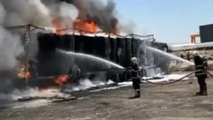 Gaziantep'te lastik yüklü tır alev alev yandı