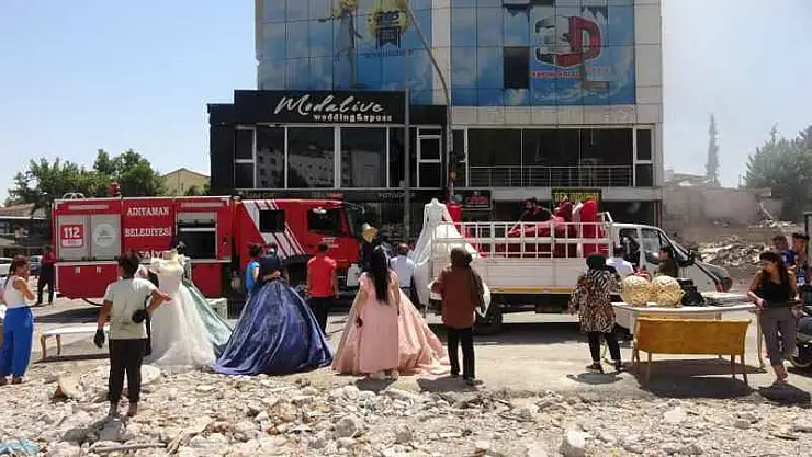 Adıyaman'da gelinlik ve abiye işletmesinde çıkan yangın korku ve paniğe neden oldu.