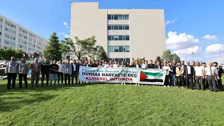 GİBTÜ Rektörü Prof. Dr. Şehmus Demir de öğrencilere destek verdi. Demir, insanlığın dibe vurduğu bir dönemde yaşadıklarını ve Filistin halkının tüm dünyanın gözlerinin önünde katledildiğini söyledi.