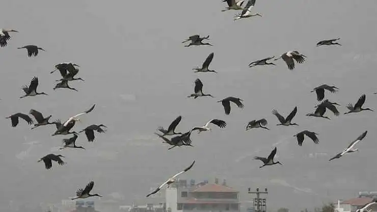 Türkiye'den Afrika'ya göç eden leylekler Hatay semalarında görsel şölen oluşturdu.