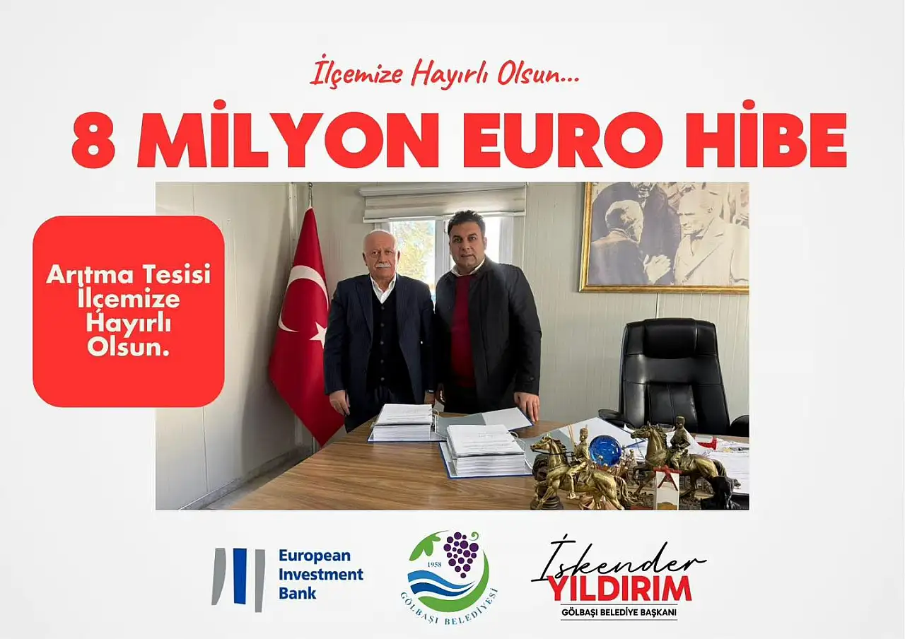 Gölbaşı ilçesine yapılması düşünülen Arıtma tesisi için Gölbaşı Beledisine Avrupa Yatırım Bankası 8.000.000 Euro hibe desteği verdi.