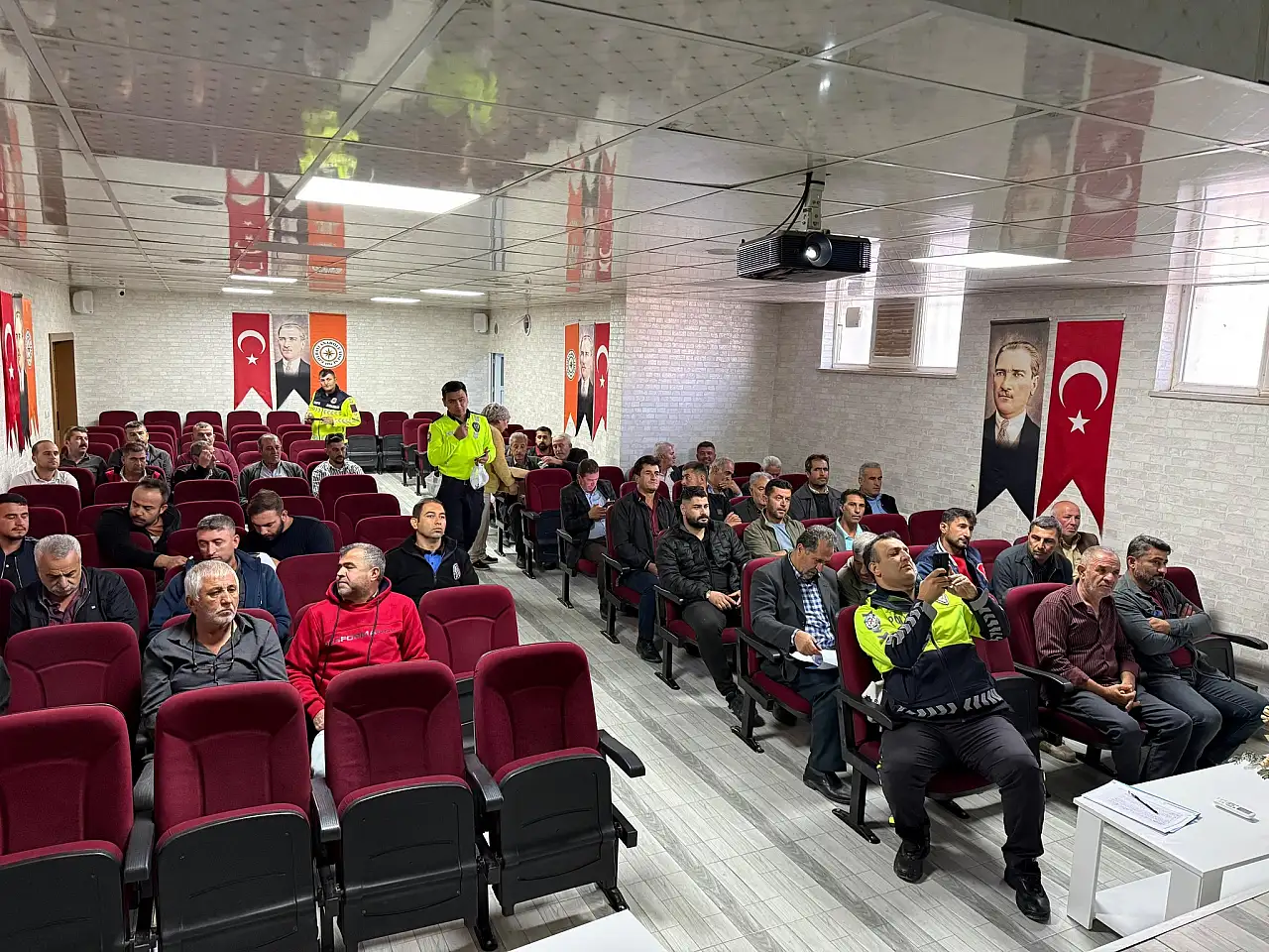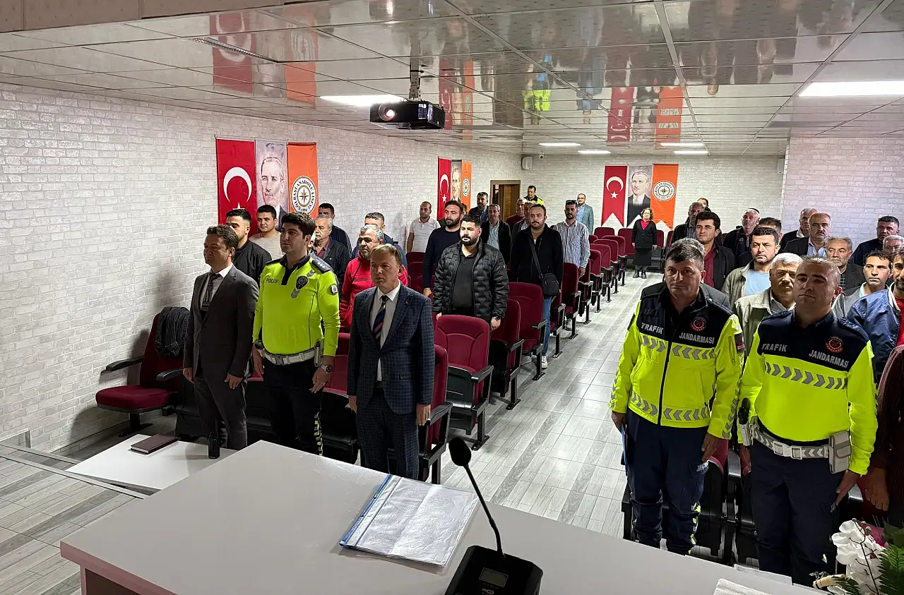 Toplantıya İlçe Milli Eğitim Müdürü Akif Torun, Şube Müdürü Adil Kahya, emniyet ve jandarma personeli katılarak sürücülere önemli hatırlatmalarda bulundu.