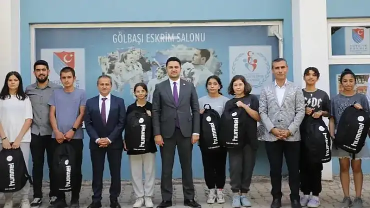 Gölbaşı'nda eskrim sporcularına ve antrenörlerine Gölbaşı Kaymakamı Tarık Buğra Seyhan ile Gençlik ve Spor İl Müdürü Fikret Keleş tarafından düzenlenen törenle dağıtıldı.