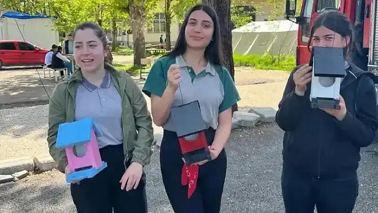 Adıyaman Gölbaşı Mesleki ve Teknik Anadolu Lisesi öğrencileri, 'Ben her yerde varım' projesi kapsamında kuşlar için ağaç dallarına yuvalar bıraktı.