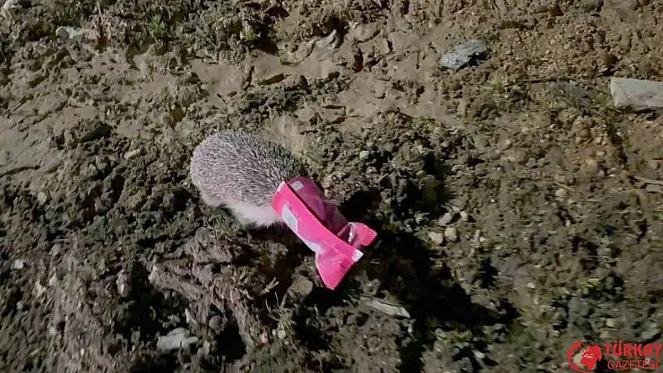 Adıyaman’da, başına geçirdiği kek ambalajından dolayı hiçbir şekilde göremeyen ve aynı zamanda beslenemeyen kirpi, ambalajdan kurtarılarak yeniden özgürlüğüne kavuştu.