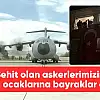 Gürcistan'da düşen uçakta şehit olan askerlerimizin baba ocaklarına bayraklar asıldı.