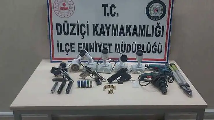 Edinilen bilgiye göre olay, düziçi ilçesi Yenice Haruniye Mahallesi, Kanal 1 sokakta meydana geldi. kurum ve işyerinde hırsızlık yapan E.Y. ve F.A. isimli şüpheliler güvenlik kamerasına yakalandı. Düziçi İlçe Emniyet Müdürlüğü, Yenice Haruniye Mahallesi’nde gerçekleşen hırsızlık olaylarının ardından düzenlediği operasyonda iki şüpheliyi yakaladı. Şüphelilerin ikametinde yapılan aramalarda olayda çalındığı tespit edilen 4 güvenlik kamerası, farklı hırsızlık olaylarından elde edilen çok sayıda suç eşyası, hırsızlık faaliyetlerinde kullanılan materyaller, üç adet ruhsatsız tabanca ve çok sayıda tabanca mermisi ile tüfek fişeği ele geçirildi.Şüpheliler E.Y. ve F.A. sevk edildikleri adliye de tutuklandı. (İHA)