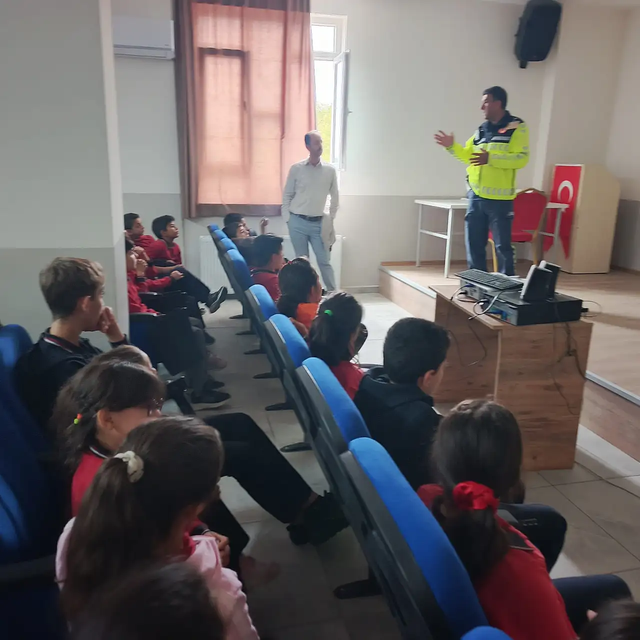Gölbaşı İlçe Jandarma Komutanlığına bağlı Trafik Tim ekipleri tarafından Harmanlı Beldesinde ilk ve ortaokul öğrencilerine yönelik trafik eğitim semineri düzenlendi.