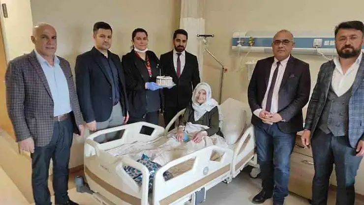 Hastanede tedavi gören 111 yaşındaki Cemile Nine'ye pastalı Kadınlar Günü sürprizi