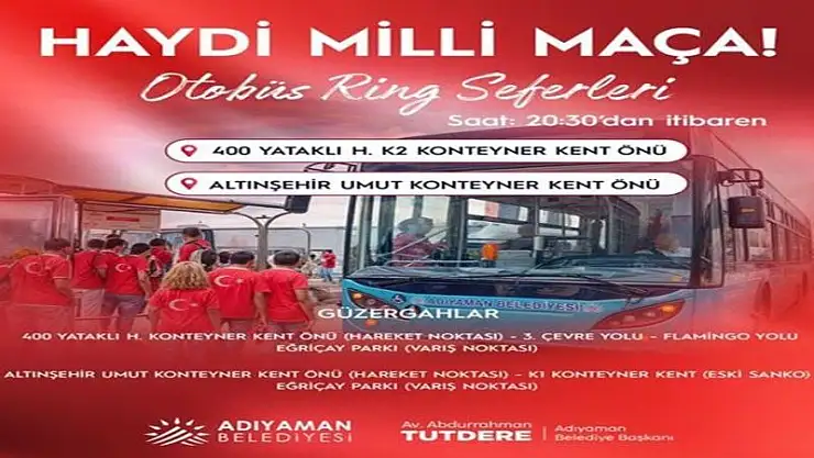 Haydi Milli Maça: Adıyaman Belediyesinden ücretsiz servis