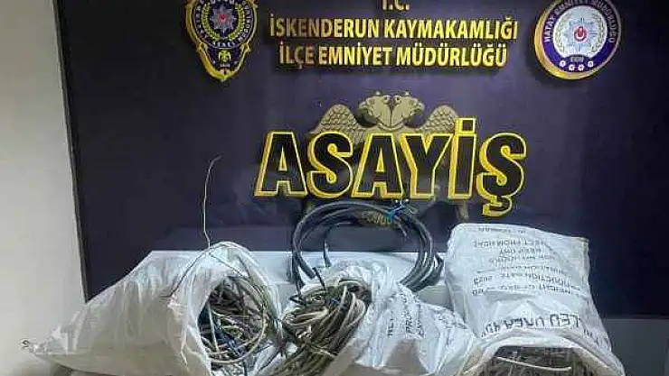 İskenderun ilçesi Çay Mahallesi’nde bulunan bir iş yerinden hırsızlık yapan C.A. ve A.K. polis ekiplerinin yaptığı çalışmalar sonucu gözaltına alındı. hatay Emniyet Müdürlüğü ekiplerinin yaptığı aramada; elektrik kablosu, bakır kablo, hurda malzemeleri ele geçirildi. A.K. adli kontrol şartıyla serbest bırakılırken, C.A. tutuklanarak cezaevine gönderildi.(İHA)