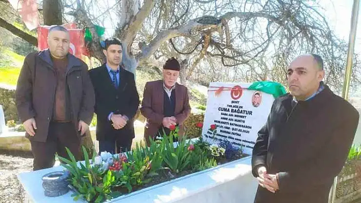 Suriye'nin İdlib kentinde 27 Şubat 2020'de rejim unsurlarının hava saldırısı sonucu şehit düşen Tankçı Sözleşmeli Er Cuma Bağatur, Batman'ın Sason ilçesinde mezarı başında dualarla anıldı.
