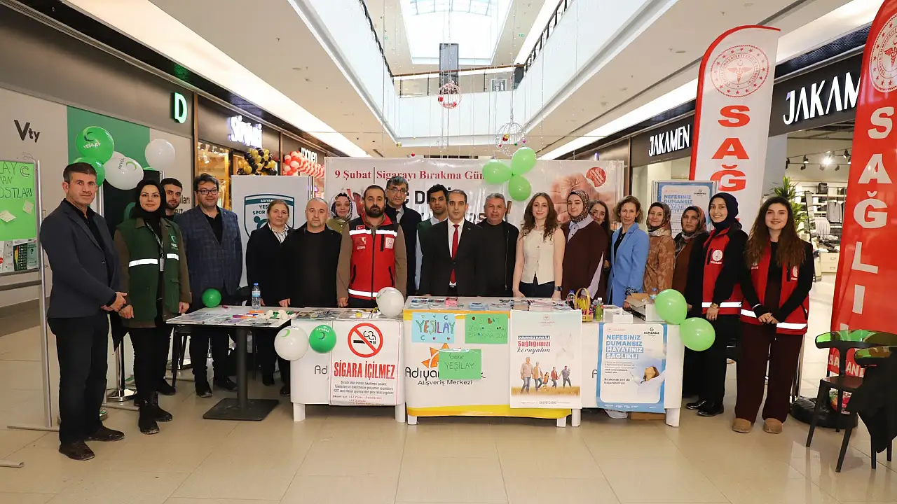 Adıyaman İl Sağlık Müdürlüğü ve Yeşilay Cemiyeti Adıyaman Şubesi tarafından düzenlenen 9 Şubat Dünya Sigarayı Bırakma Günü etkinlikleri kapsamında, ilk olarak farkındalık yürüyüşü gerçekleştirildi. Yürüyüşün ardından etkinlik kapsamında Park AVM’de bilgilendirme standı kuruldu.