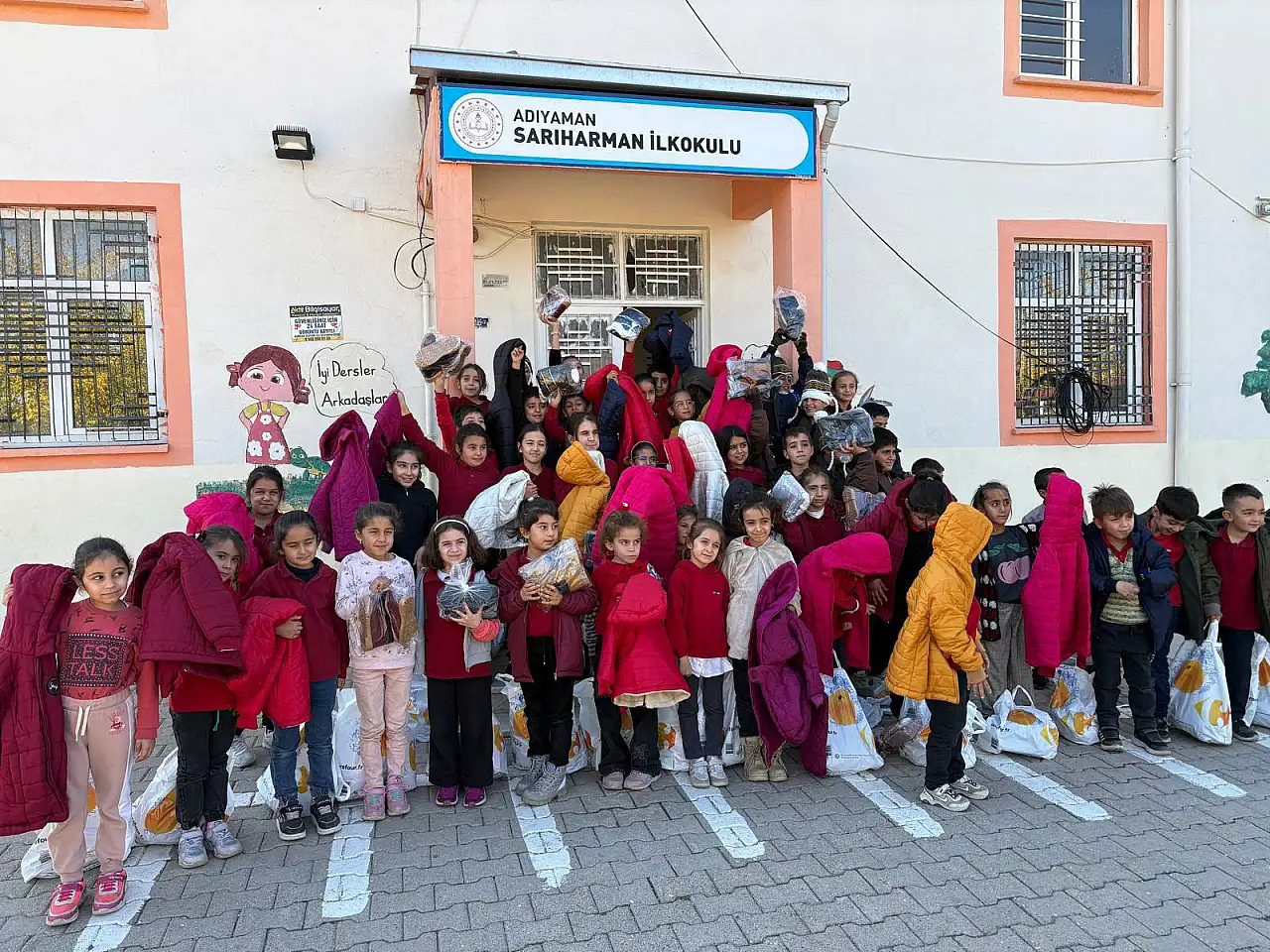 İsar Derneği Adıyaman Şubesi tarafından kış mevsimi dolasıyla Sarıharman ilkokulunda ihtiyaç sahibi öğrencilere kışlık kıyafet yardımında bulundu.