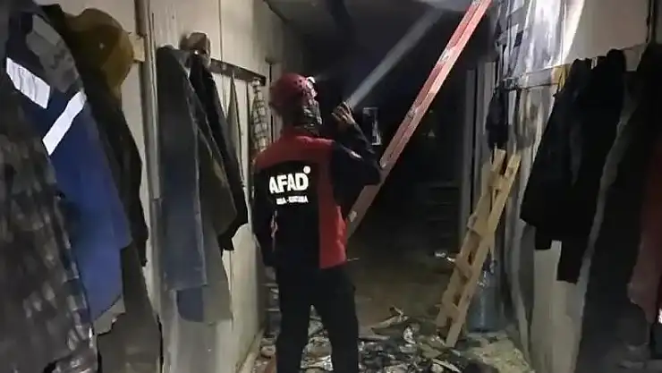 Adıyaman'da toplu konut inşaatında çalışan işçilerin kaldığı prefabrikte çıkan yangın büyümeden söndürüldü.