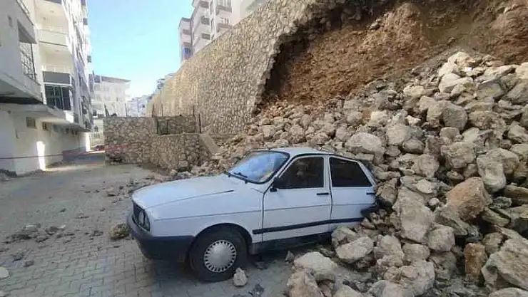 Adıyaman'ın Besni ilçesinde 2 otomobil, çöken istinat duvarının altında kalarak hasar aldı.