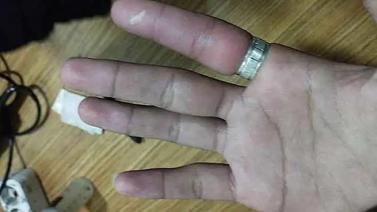 Şanlıurfa’nın Haliliye ilçesinde bir genç, sağ elinin işaret parmağına taktığı gümüş yüzük sıkıştı. Parmağında sıkışan yüzüğü çıkaramayan vatandaş, Mehmet Akif İnan Eğitim ve Araştırma Hastanesine geldi. Burada hastane doktoru durumu itfaiye ekiplerine bildirerek yardım istedi. Hastaneye gelen itfaiye ekipleri gencin, parmağına sıkışan yüzüğü doktor gözetiminde spiral ile çıkarttı. Genç, yüzüğü çıkaran itfaiye ekiplerine teşekkür etti.