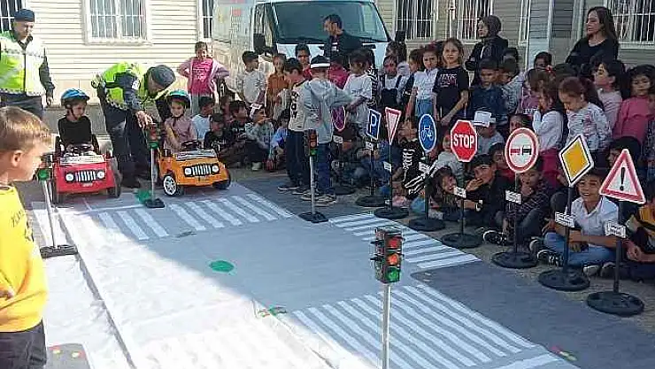 Şanlıurfa'nın Siverek ilçesinde, Jandarma ekipleri, şehirdeki okullarda trafik güvenliği konusunda farkındalık oluşturmak amacıyla öğrencilere trafik eğitimi verdi.